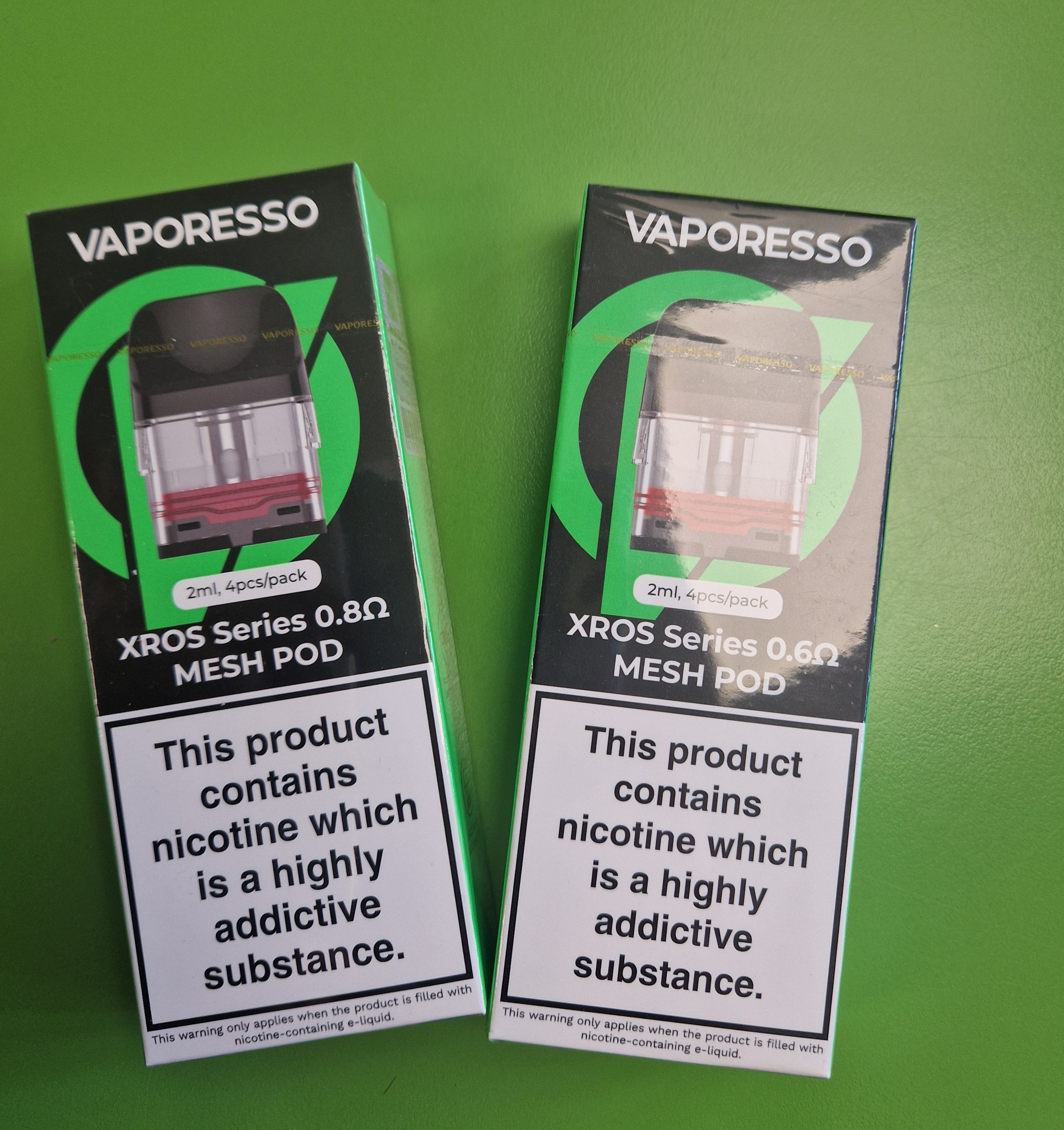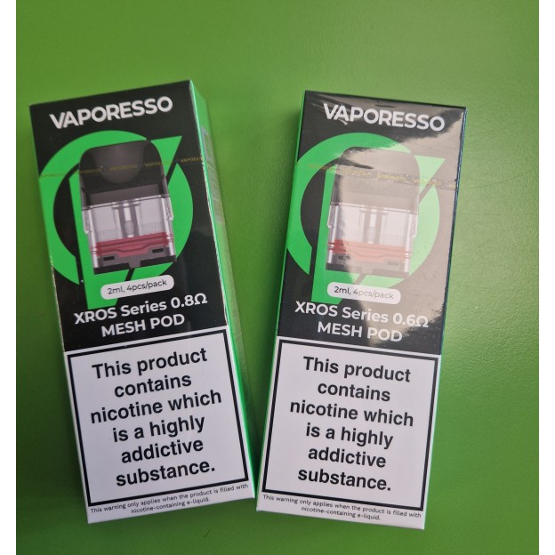 Vaporesso XROS Pod Series - 4-Pack, featuring a 2mL refillable pod capacity, hidden top fill system, and utilizes a mesh coil heating structure. Constructed with a transparent juice viewing window, the XROS replacement pods allow for the user to check juice levels without removing the pod. Equipped with an integrated mesh coil, the XROS pods consist of 0.6ohm to 1.2ohm mesh coil pods, facilitating a hidden top fill system revealed by snapping off the mouthpiece.
