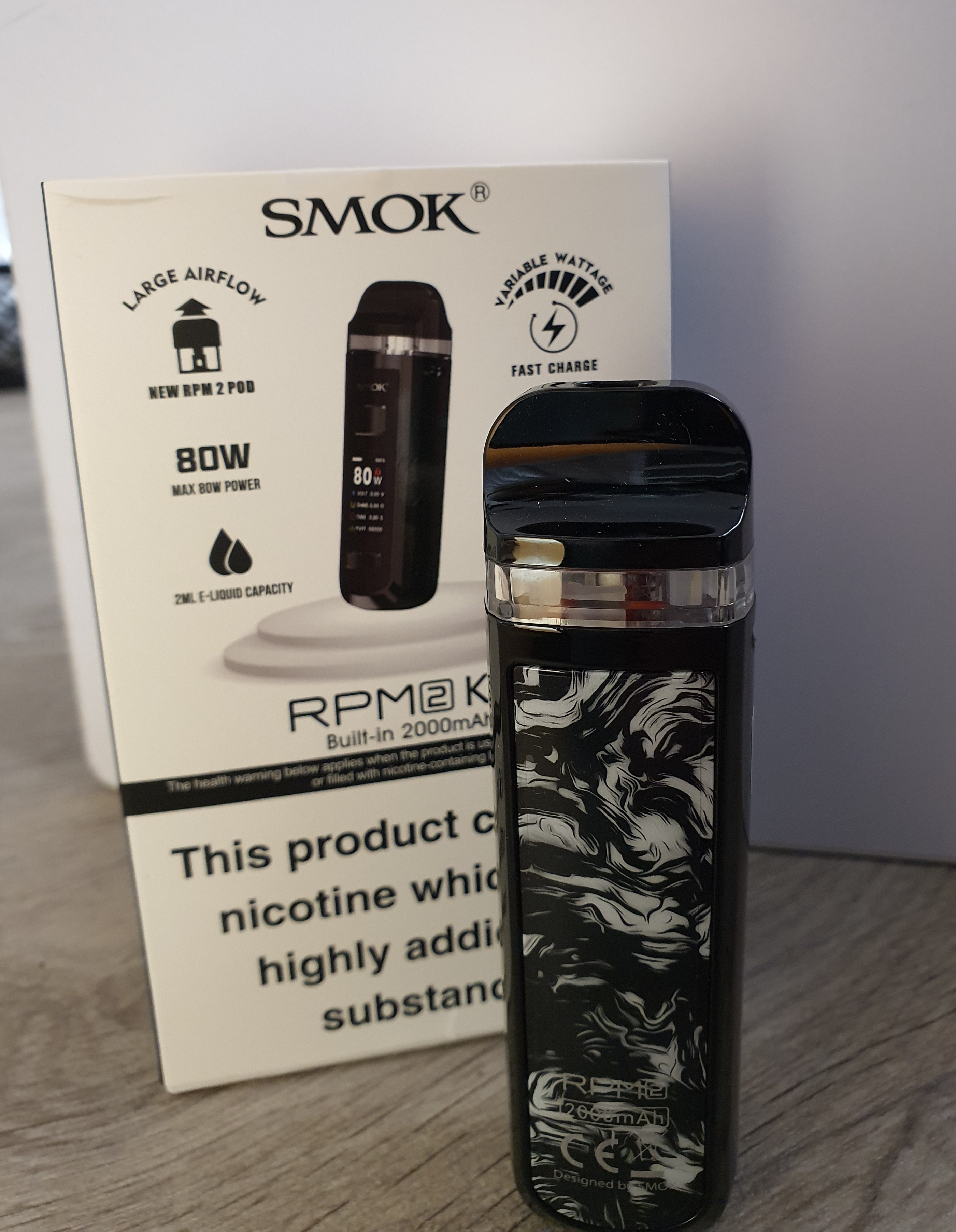 The Smok RPM 2 Kit is an updated version of RPM40 Kit. The new Smok RPM 2 Kit is powered by a built in 2000mAh battery and powers up to 80W.